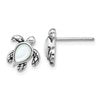 Sterling Silver Rhodium-plated Polished and Antiqued Mother of Pearl June Birthstone Turtle Earrings