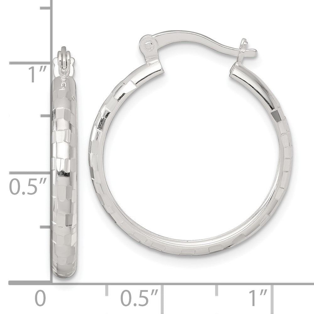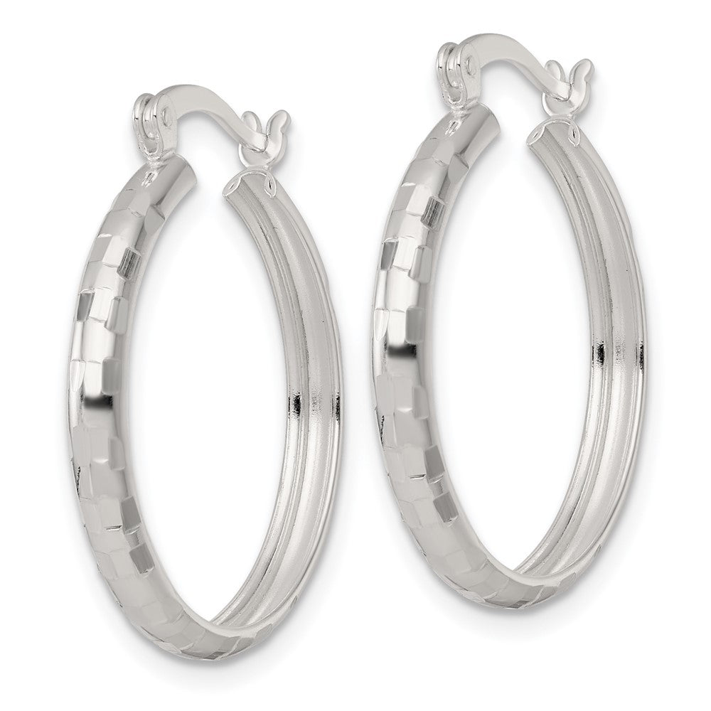 Sterling Silver Polished Diamond-cut 25x3mm Round Hoop Earrings