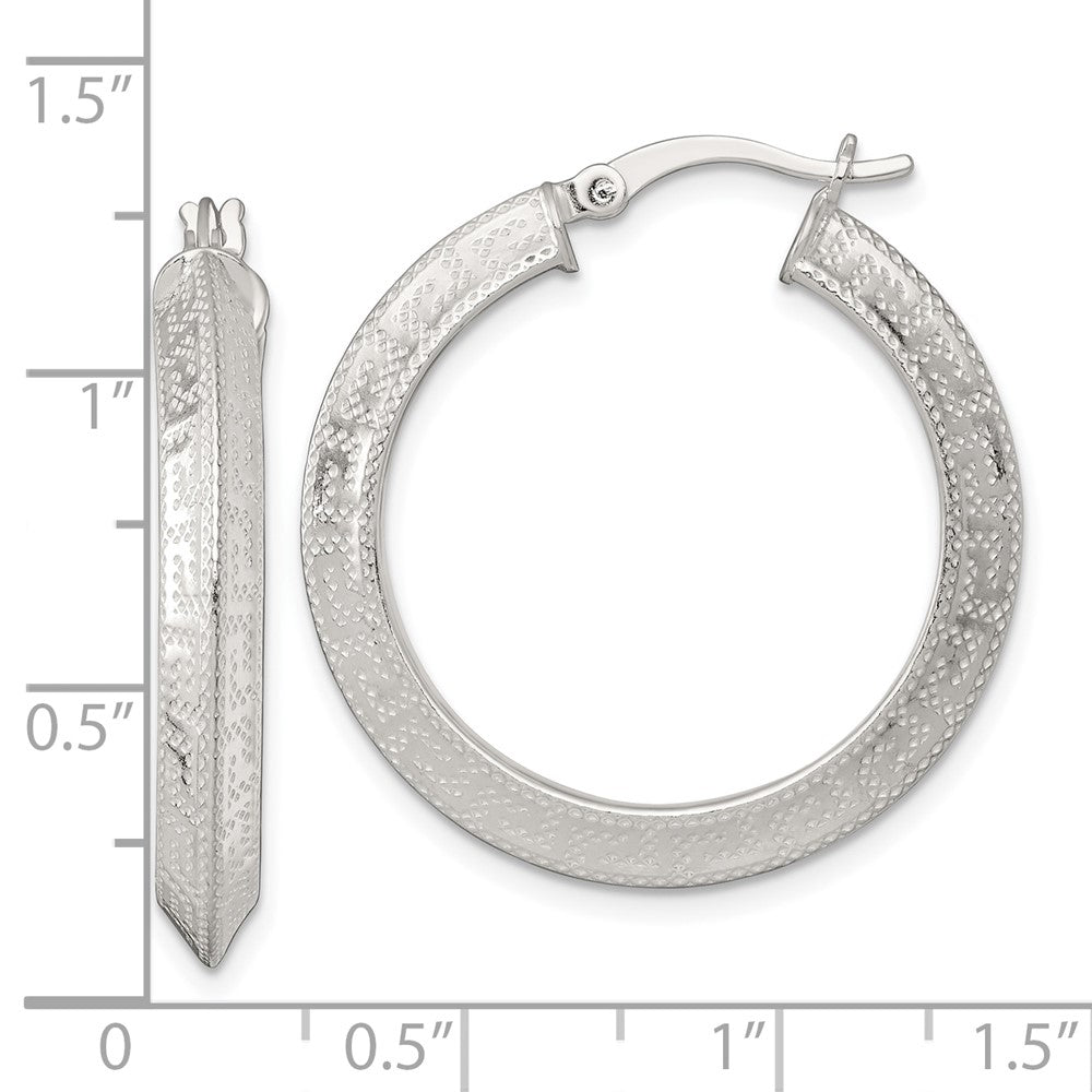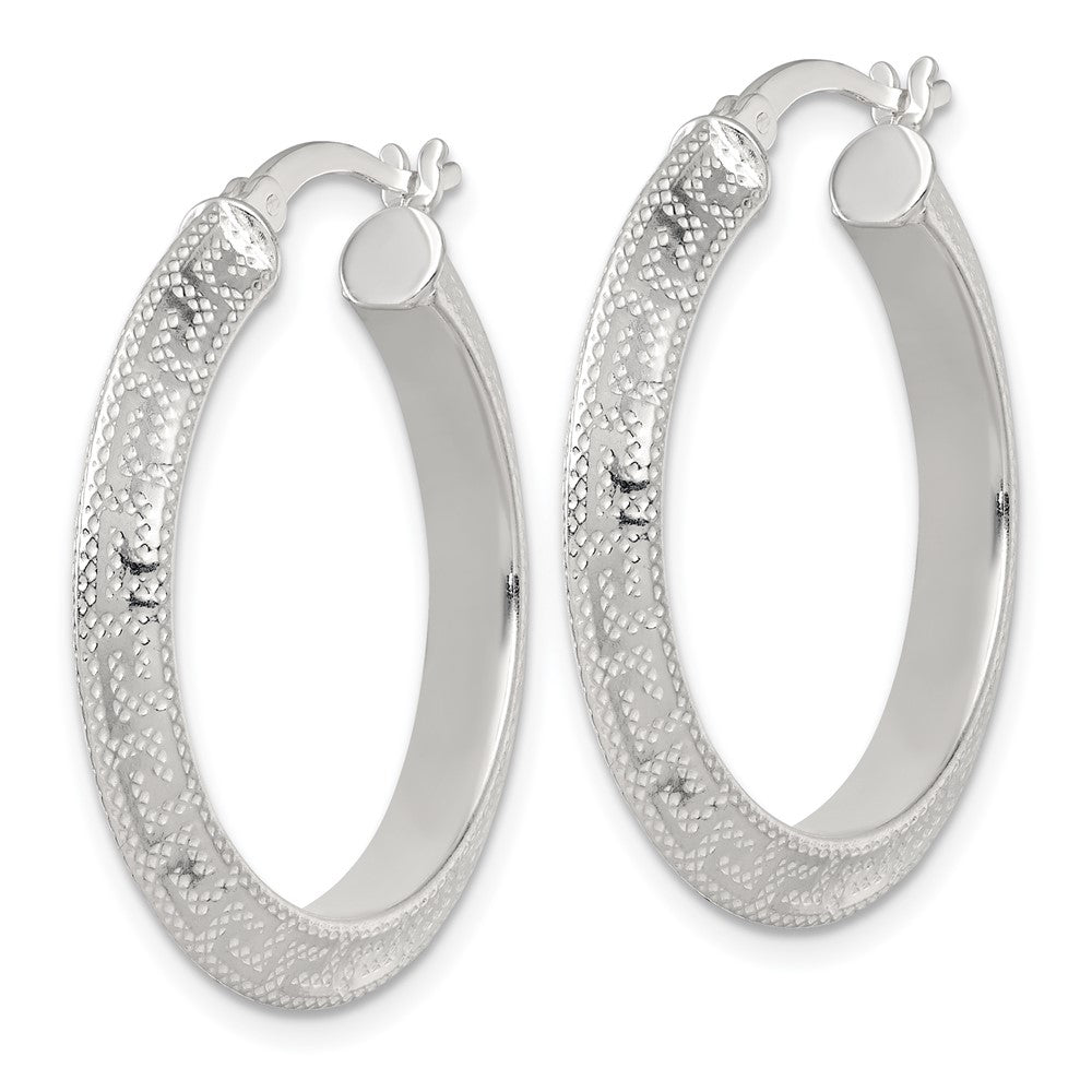 Sterling Silver Textured 30x4.0mm Knife Edge Greek Key Round Hoop Earrings