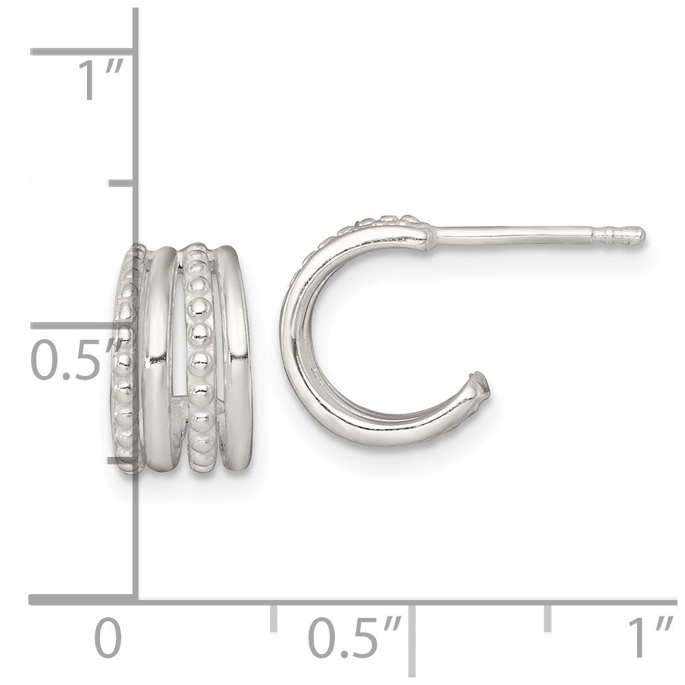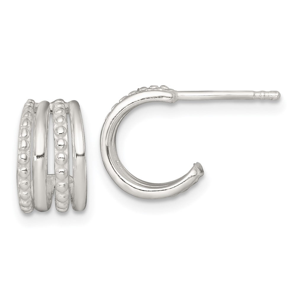 Sterling Silver Polished and Beaded 4-Row C-Hoop Post Earrings