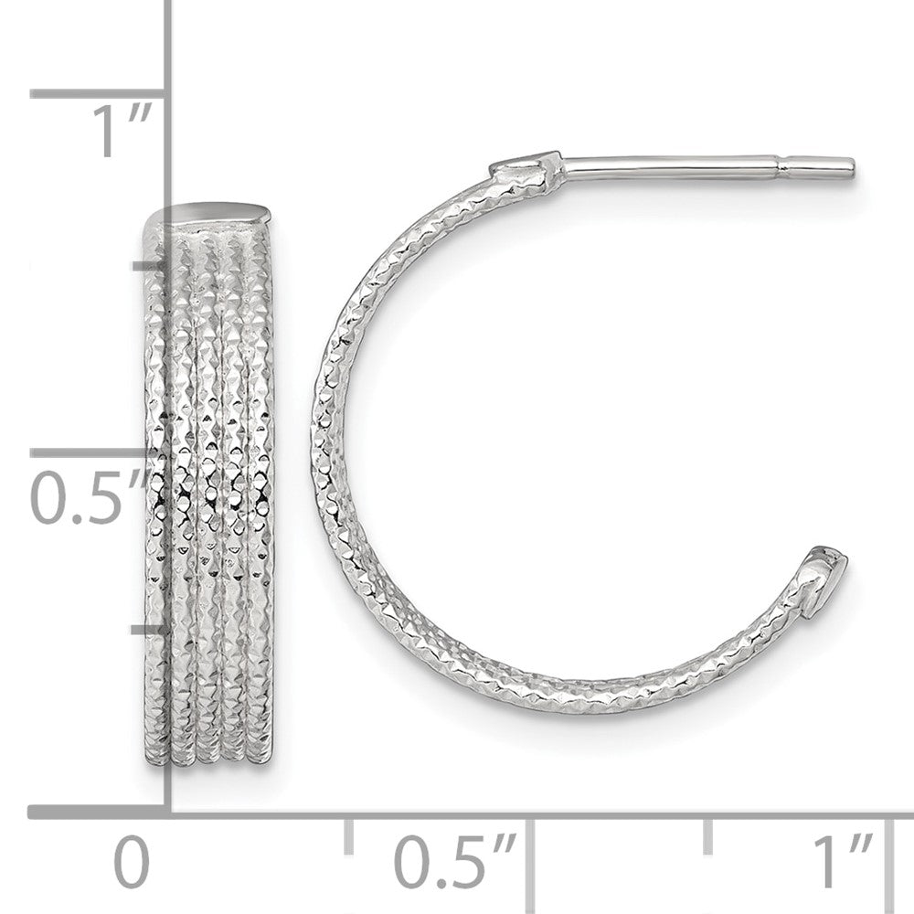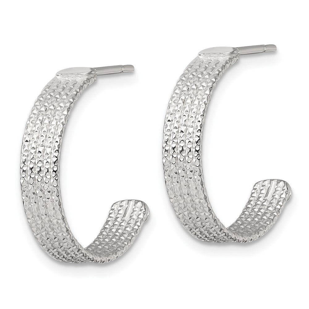 Sterling Silver Polished and Textured 20x4.5mm Post C-Hoop Earrings