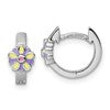 Sterling Silver Rhodium-plated Children's Purple, Yellow and Pink Enamel Flower Hinged Hoop Earrings