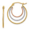 Sterling Silver Rhod-plated Yellow/Rose Vermeil 1.5mm Triple Hoop Earrings