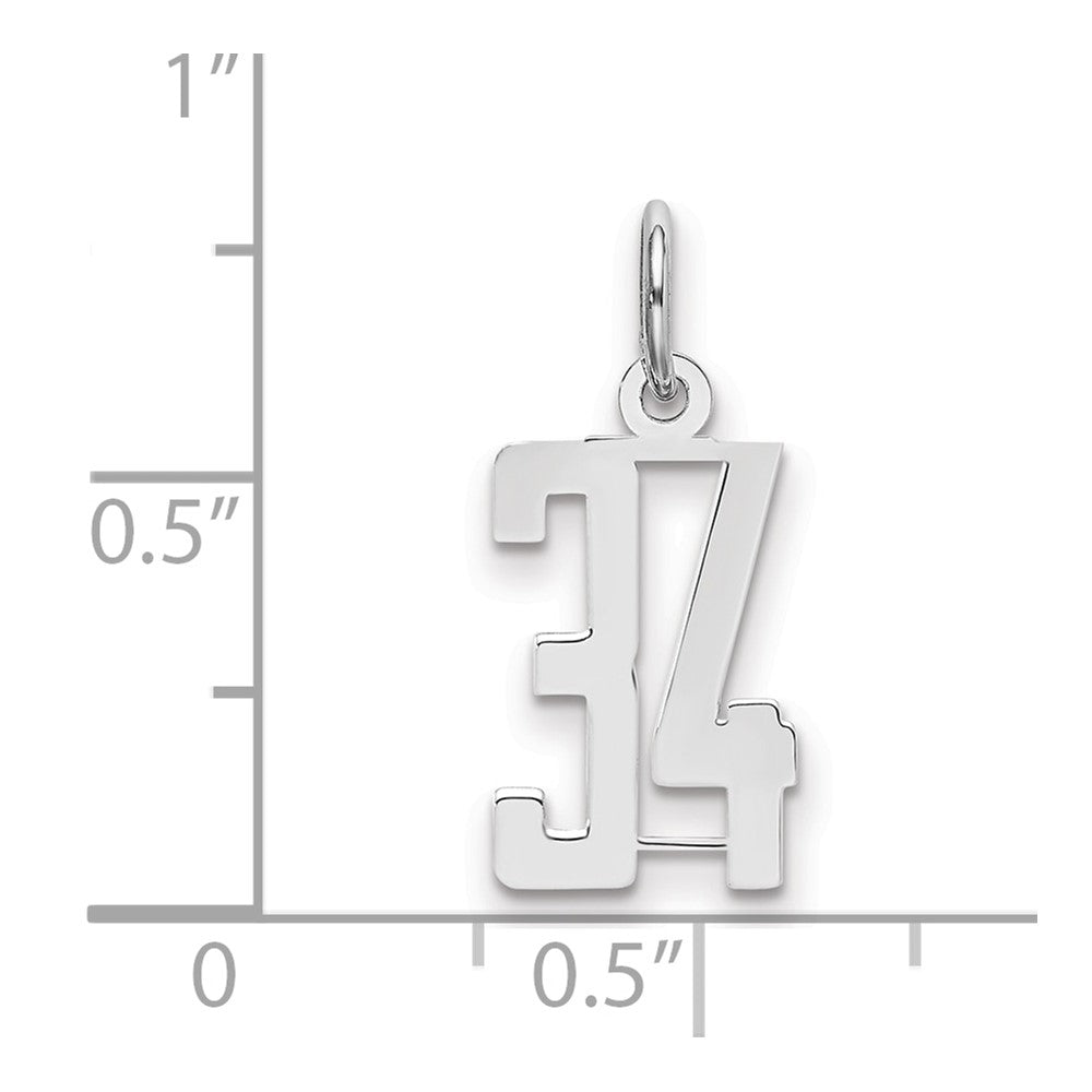 Sterling Silver/Rhodium-plated Elongated Number 34 Charm