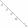 Sterling Silver Puffed Heart Charms 9 inch Plus 1 inch Extender - Total 10 inch Anklet