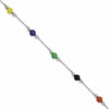 Sterling Silver Rhodium-plated 9inch Polished Multi-Color Jade Anklet