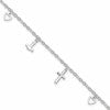 Sterling Silver Cross/Heart/Anchor 10 inch Plus 1 inch Extender - Total 11 inch Anklet