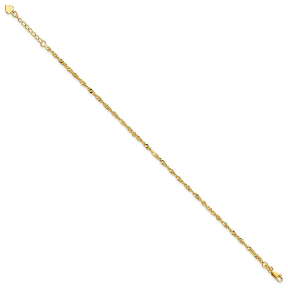 Sterling Silver Gold-tone 3mm Singapore Chain 9 inch Plus 1 inch Extender - Total 10 inch Anklet