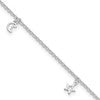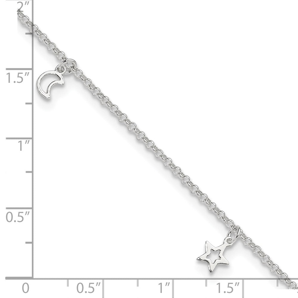 Sterling Silver Moon and Stars 9 inch Plus 1 inch Extender - Total 10 inch Anklet