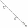 Sterling Silver Puffed Heart Charms 10 inch Plus 1 inch Extender - Total 11 inch Anklet