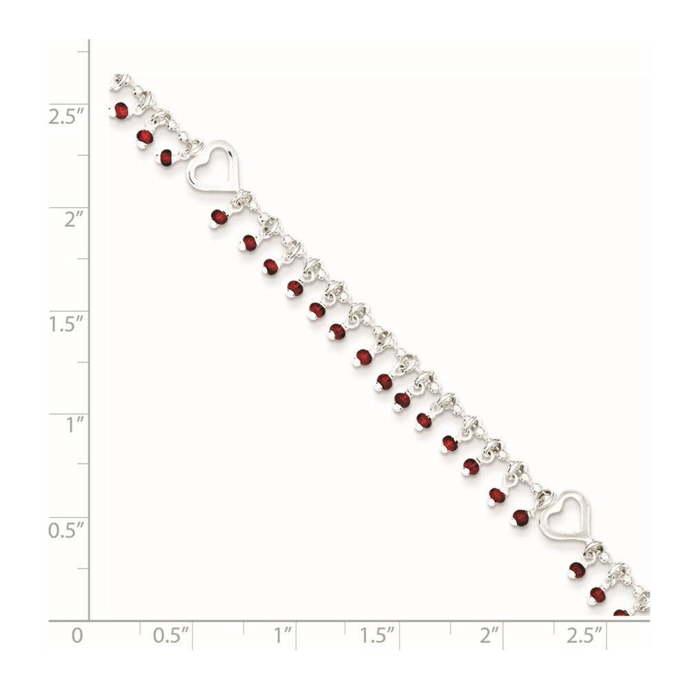 Sterling Silver Red Beads and Heart 10 inch Plus 1 inch Extender - Total 11 inch Anklet
