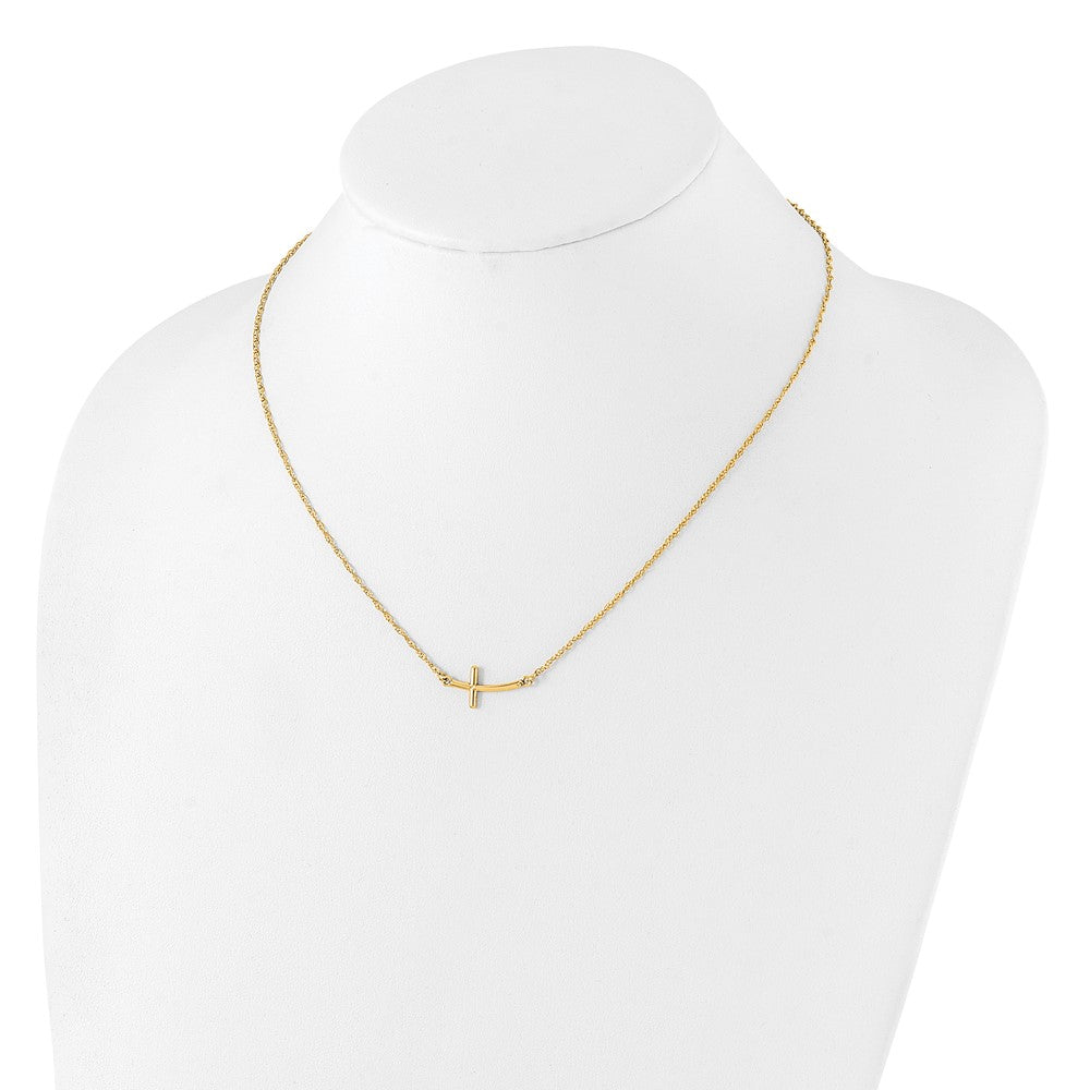 Sterling Silver YG-plated Small Sideways Curved Cross Necklace