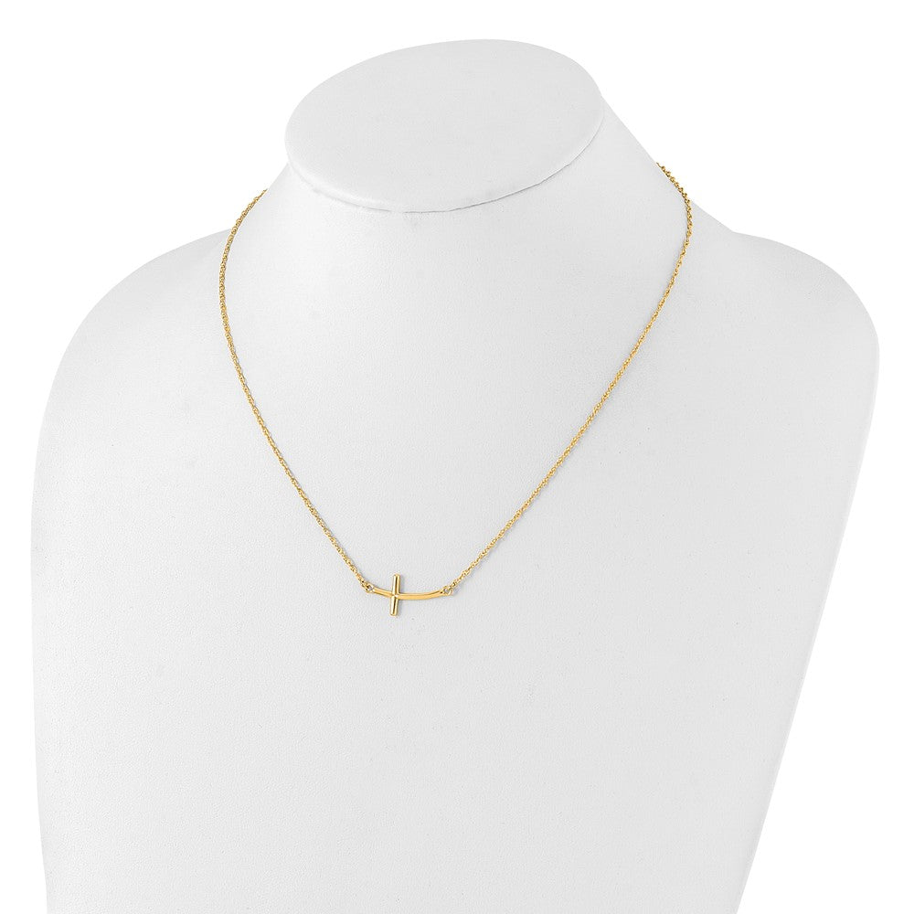 Sterling Silver YG-plated Large Sideways Curved Cross Necklace