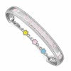 Sterling Silver Rhodium-plated Polished & Beaded Multi-color Enameled Flowers & Hearts PRINCESS with Chain Baby Bangle