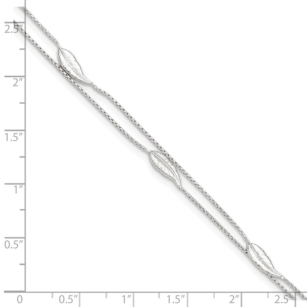 Sterling Silver 2-Strand Feathers 9 inch Plus 1 inch Extender - Total 10 inch Anklet