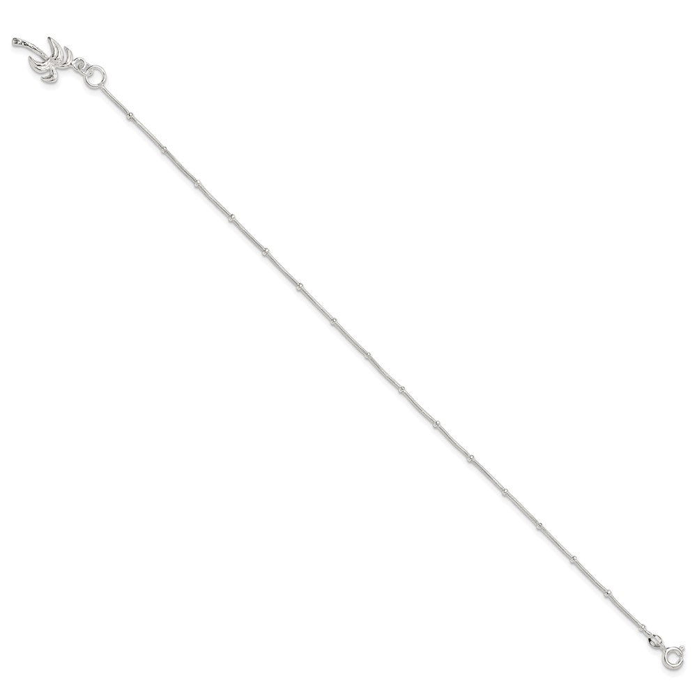 Sterling Silver 10inch Solid Polished Palm Tree Anklet