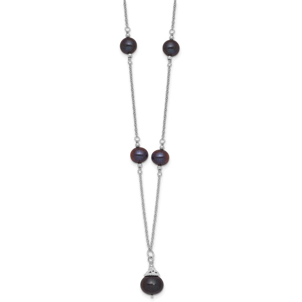 Sterling Silver Rhodium-plated 9-10mm Black Semi-Round Freshwater Cultured Pearl 18 inch Necklace and Dangle Earrings Set