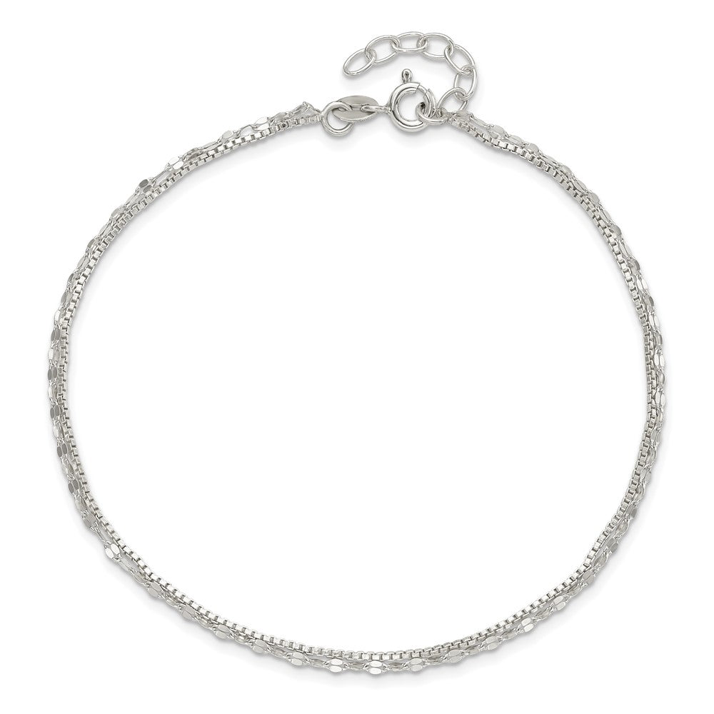 Sterling Silver 2-Strand 9 inch Plus 1 inch Extender - Total 10 inch Anklet