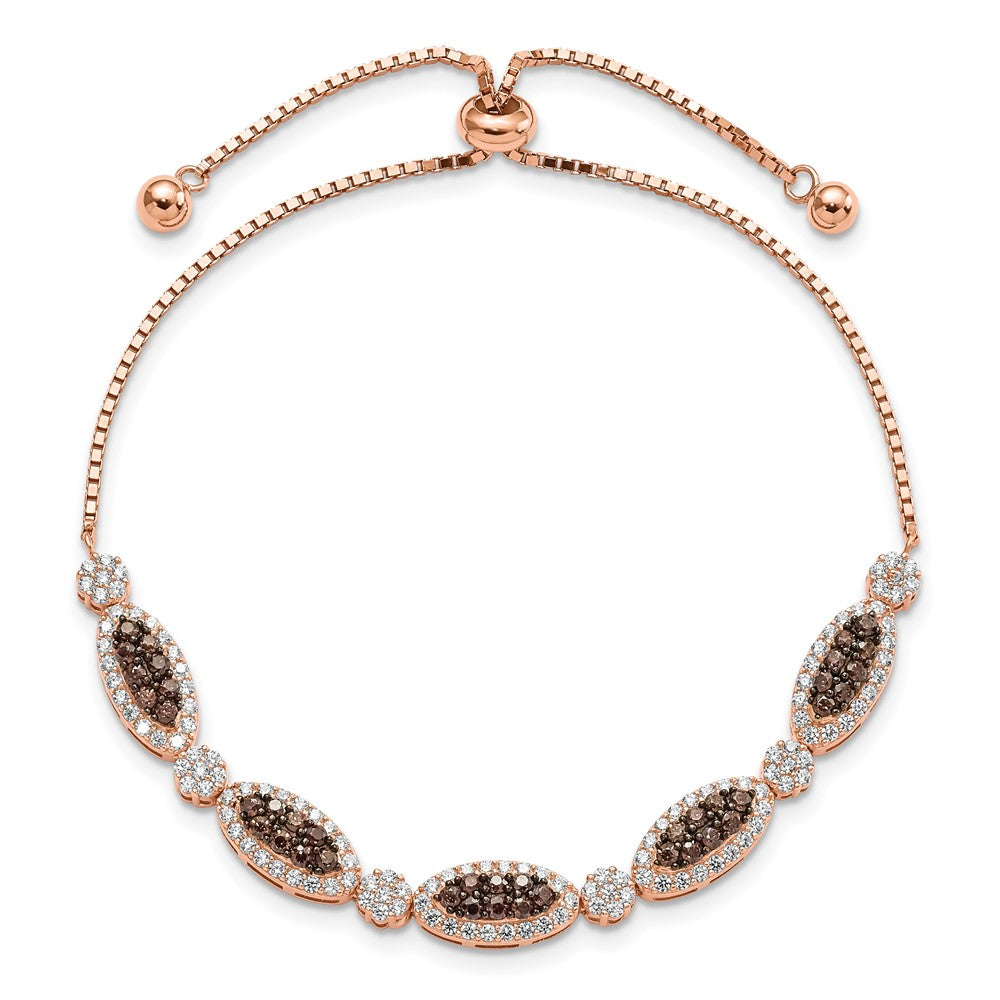 Sterling Silver Rose-tone Blk Rhodium-plated CZ Fancy Adjustable Bracelet