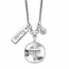Sterling Silver Rhodium-plated Satin Cross/Hope/CZ w/1.5in Ext Necklace