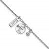 Sterling Silver Rhodium-plated Satin Cross Hope CZ with .5in Ext Bracelet