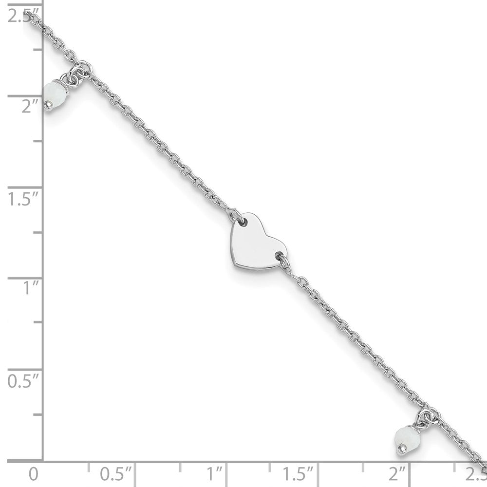 Sterling Silver Rhodium-plated Heart/Glass Beads 9 inch Plus 1 inch Extender - Total 10 inch Anklet