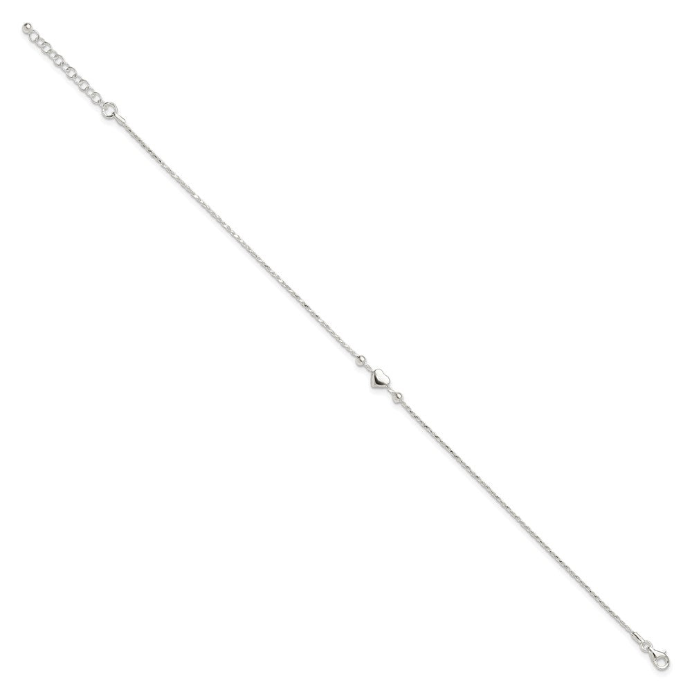 Sterling Silver Heart/Beads 9 inch Plus 1 inch Extender - Total 10 inch Anklet