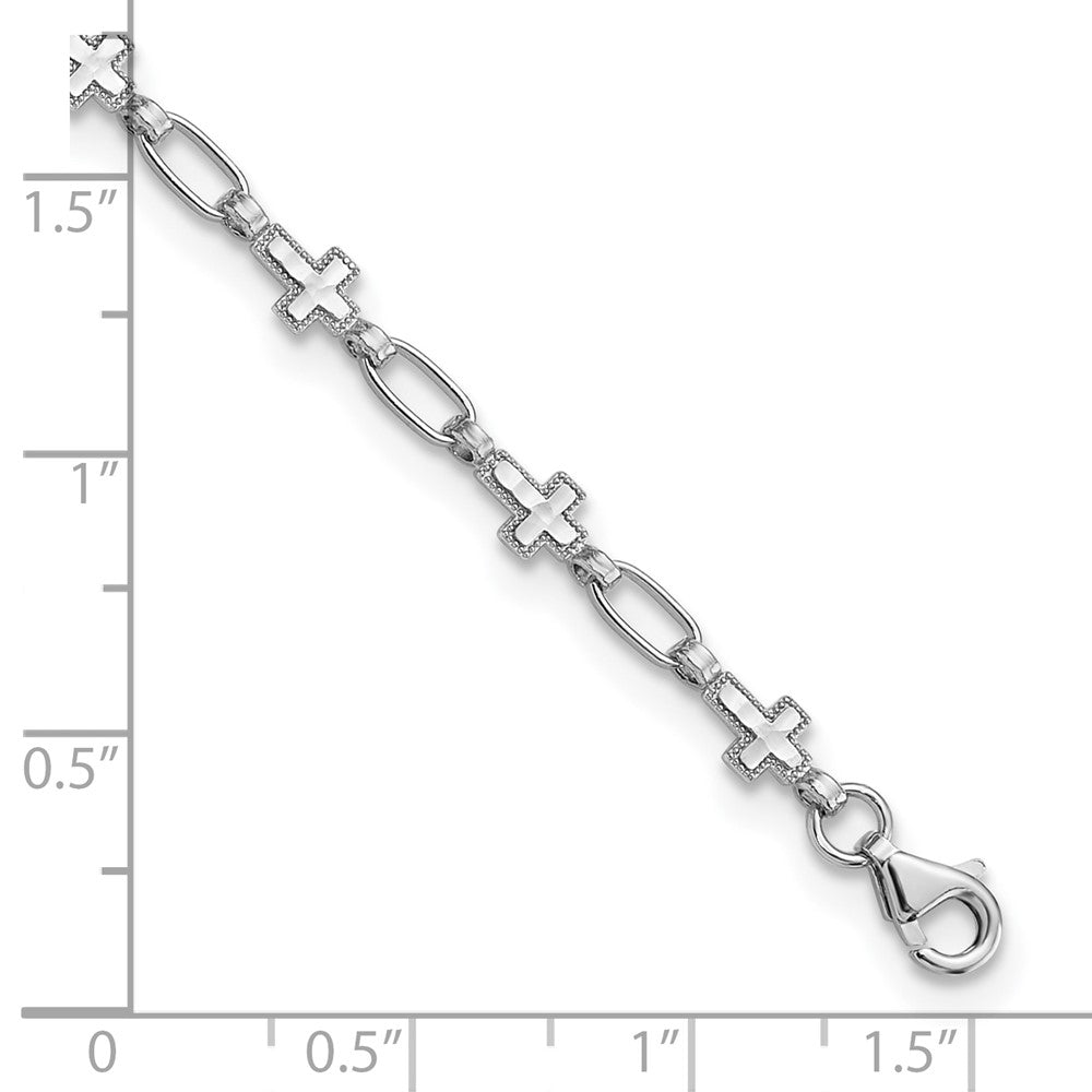 Sterling Silver Rhodium-plated Cross 9.75in Anklet