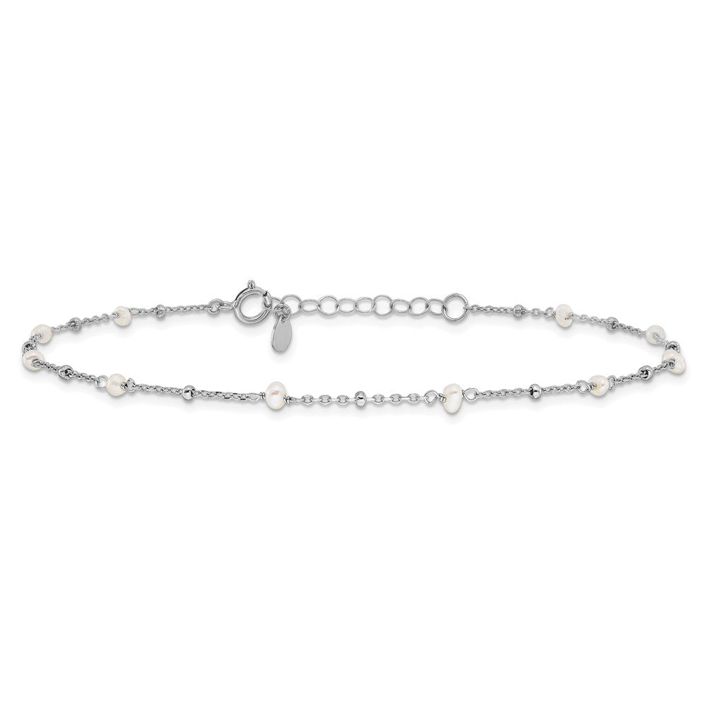 Sterling Silver Rhodium-plated 3mm Freshwater Cultured Pearl 9 inch Plus 1 inch Extender - Total 10 inch Anklet