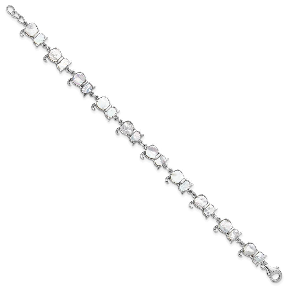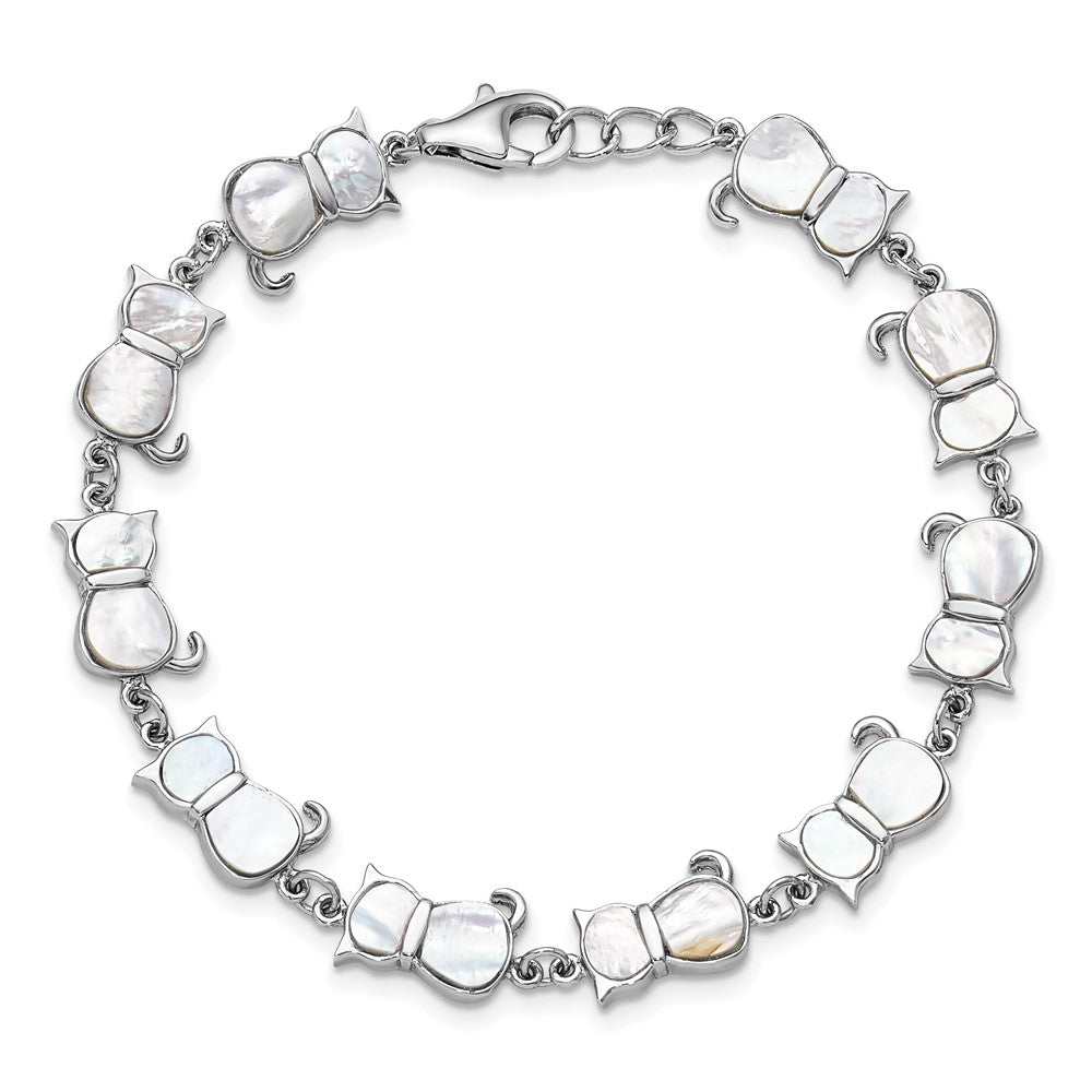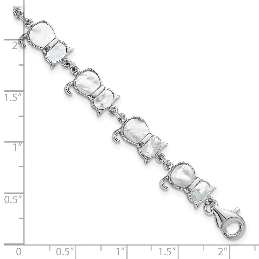 Sterling Silver Rhodium-plated Mother of Pearl Cat Link Bracelet