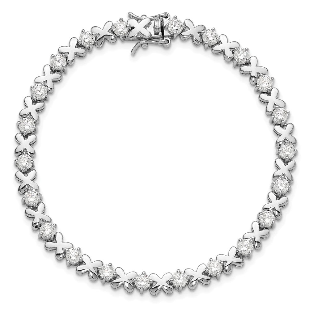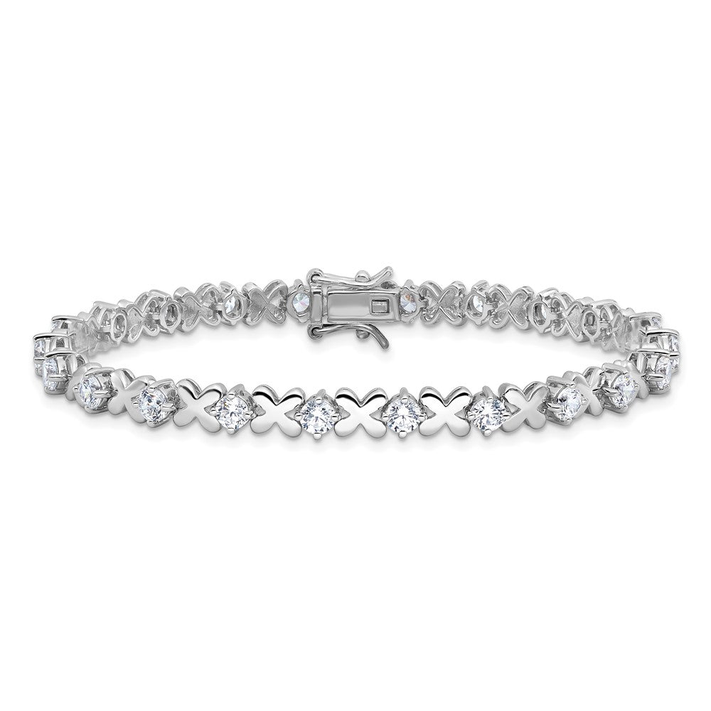 Sterling Silver Rhodium-plated Polished Fancy X's CZ Tennis Bracelet