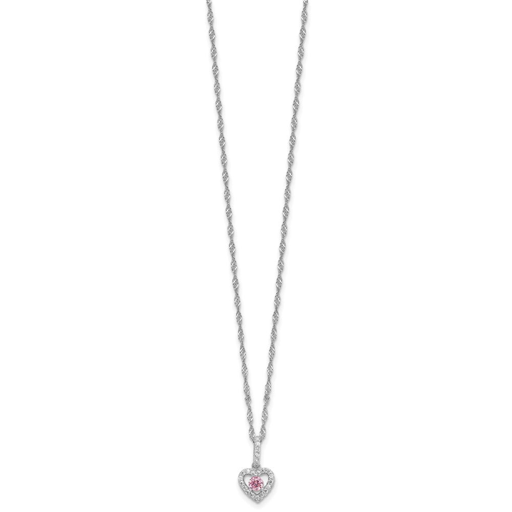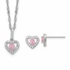Sterling Silver Rhodium-plated Polished Pink & White CZ Heart Children's 10in w/2in Ext. Necklace & Post Earring Set