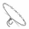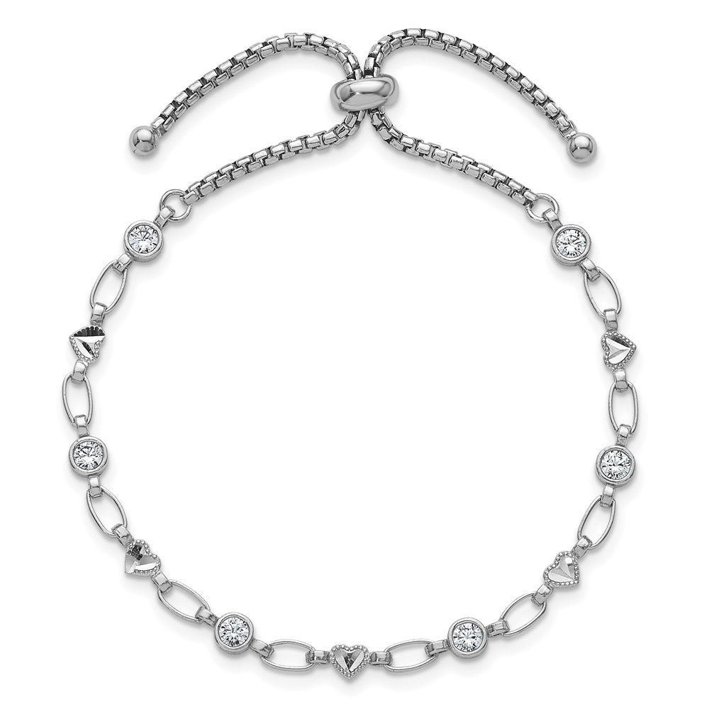 Sterling Silver Rhodium-plated Polished Round CZ and Diamond-cut Heart Adjustable Bolo Bracelet