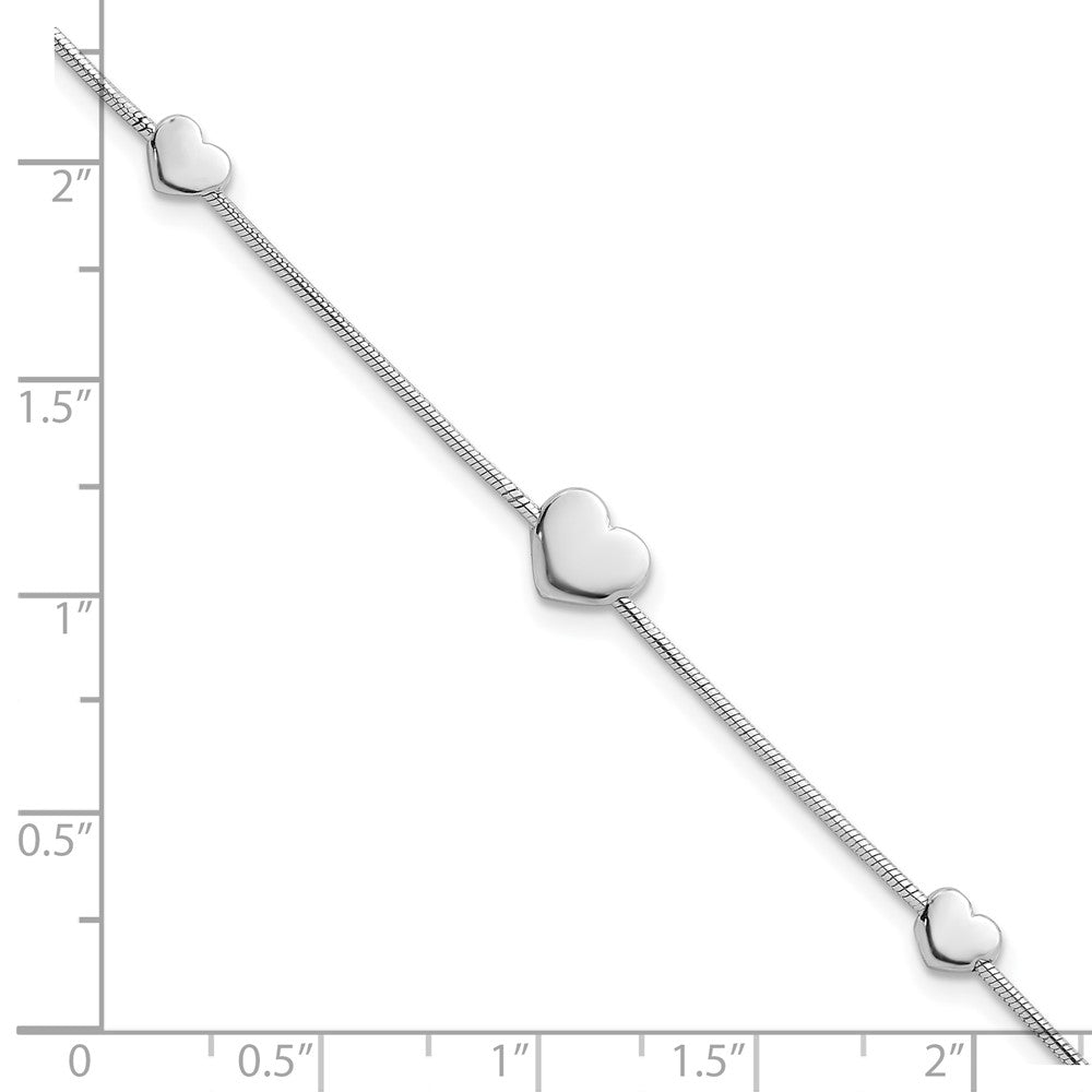 Sterling Silver Rhodium-plated Three Hearts 7 inch with 1 inch Extension Bracelet
