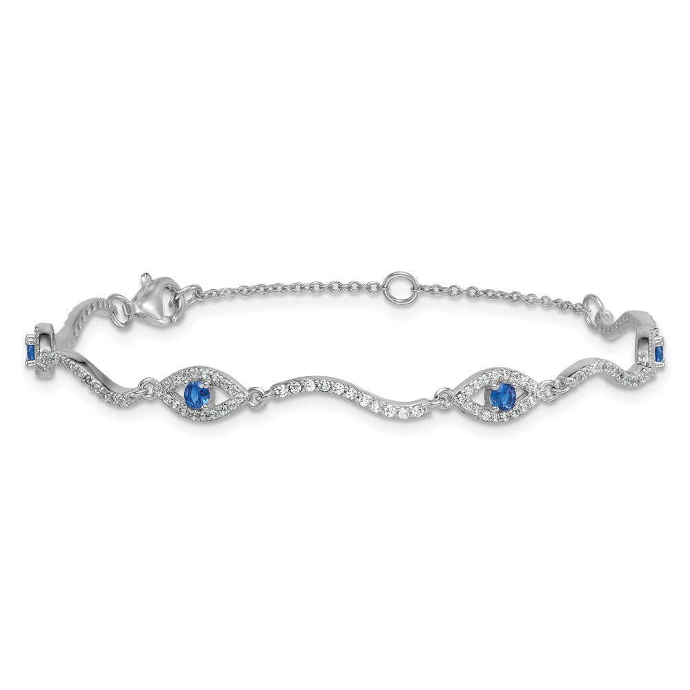 Sterling Silver Rhodium-plated Polished Lab Created Spinel and CZ Evil Eye 6 Inch with 2 Inch Extension Bracelet
