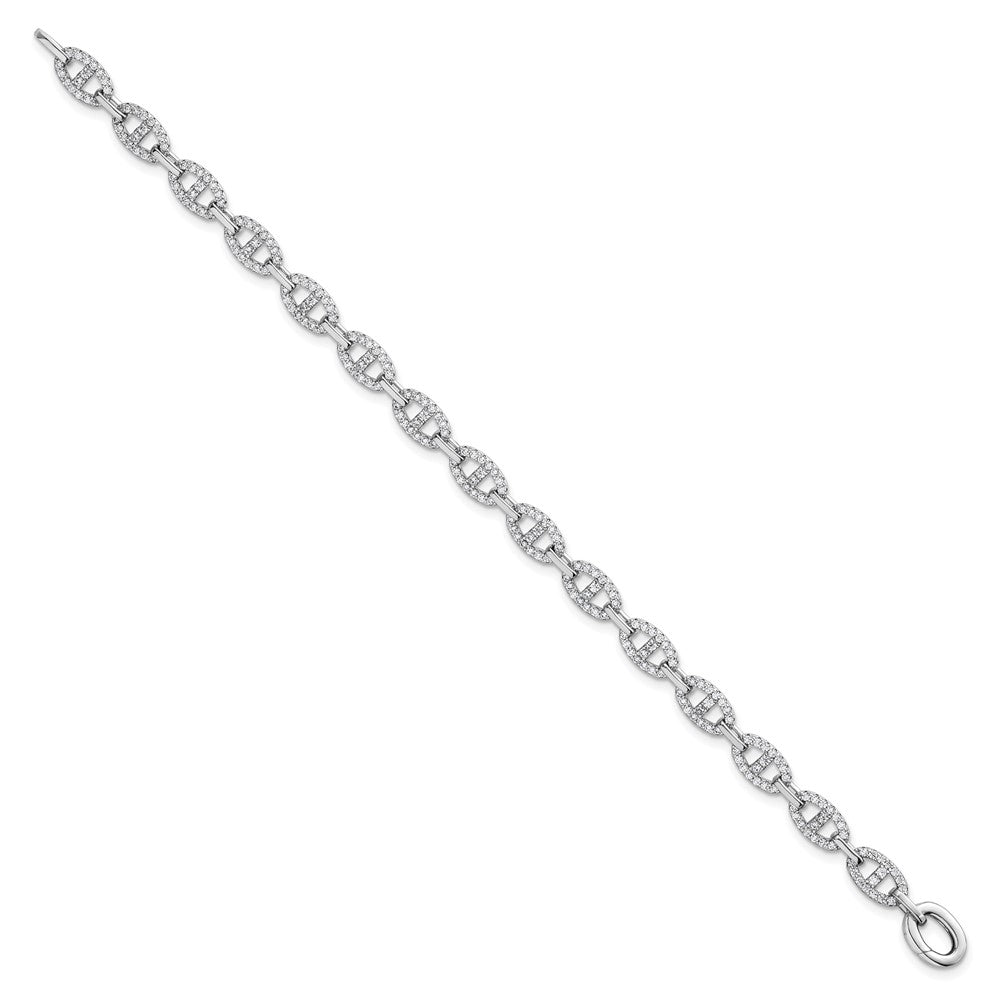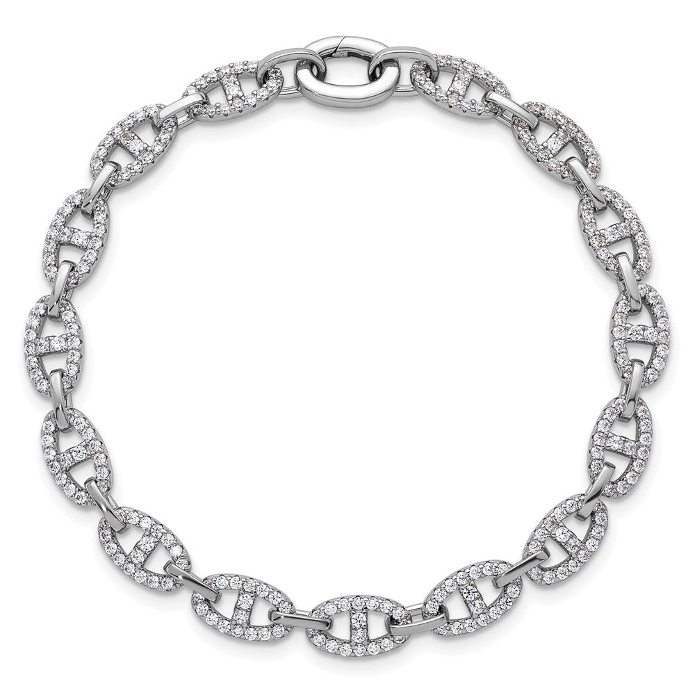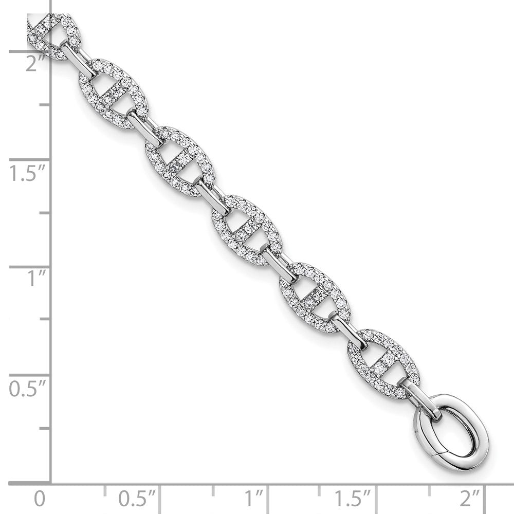 Sterling Silver Rhodium-plated Polished CZ Anchor/Mariner Link 7.25 inch Bracelet