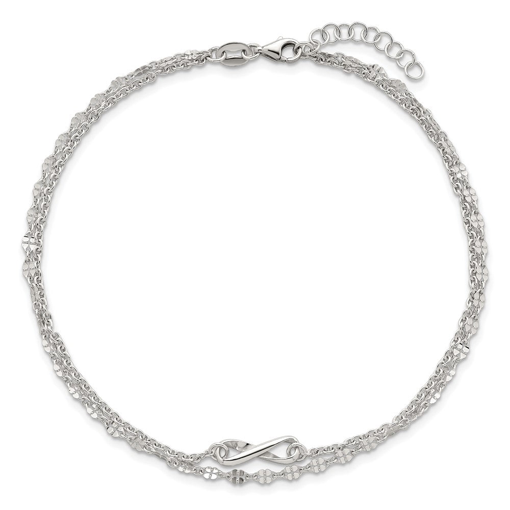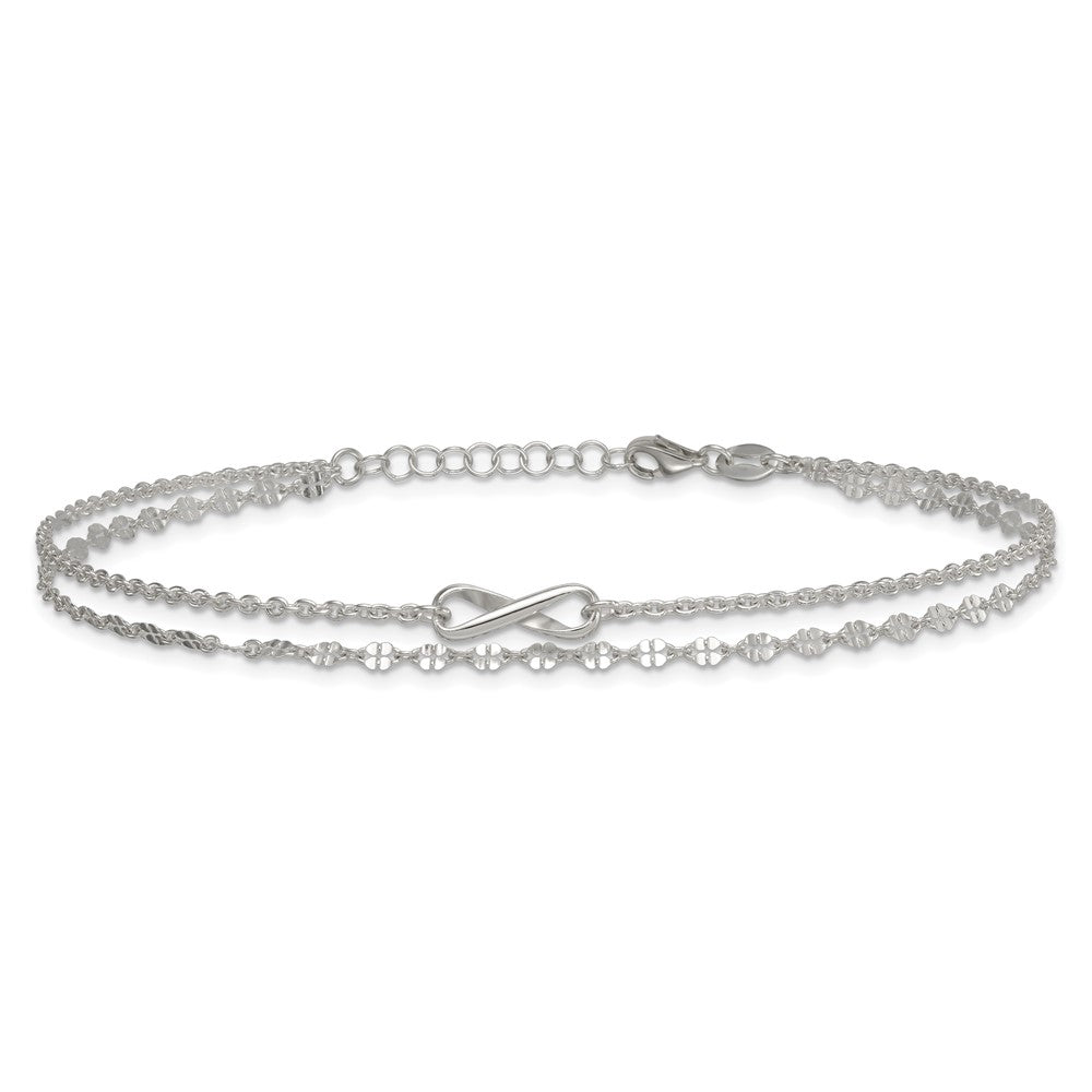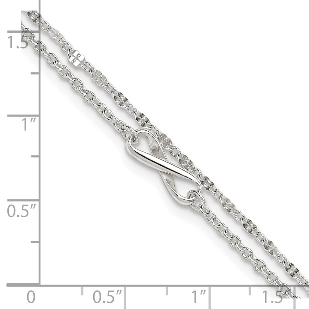Sterling Silver Infinity Double Strand 9 inch Plus 1 inch Extender - Total 10 inch Anklet