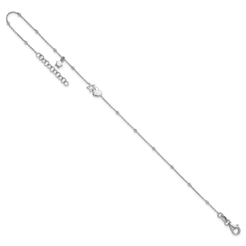 Sterling Silver Rhodium-plated Heart/Stars 9 inch Plus 1 inch Extender - Total 10 inch Anklet