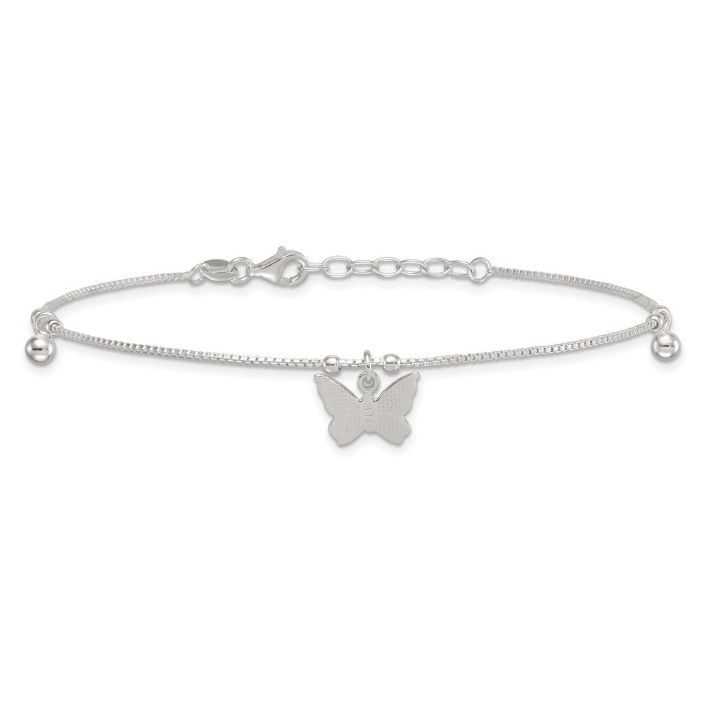 Sterling Silver Beaded Butterfly 9 inch Plus 1 inch Extender - Total 10 inch Anklet