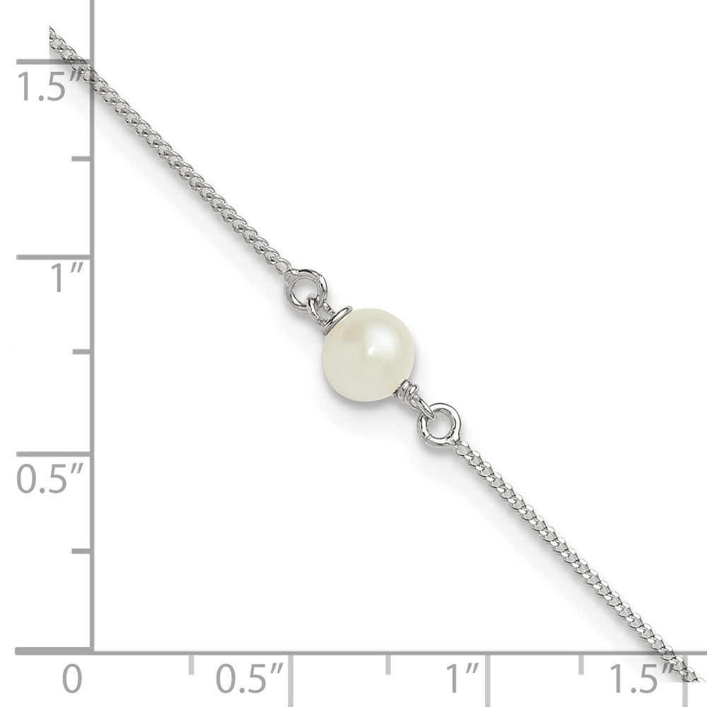 Sterling Silver Freshwater Cultured Pearl 9 inch Plus 1 inch Extender - Total 10 inch Anklet