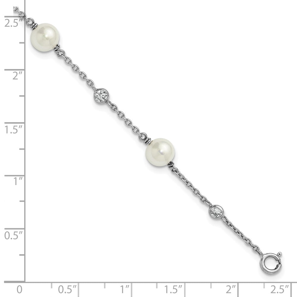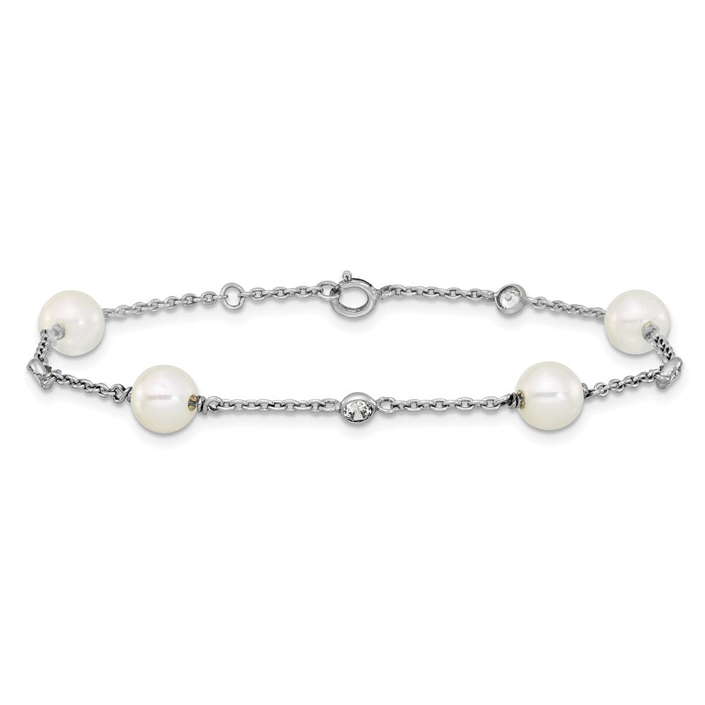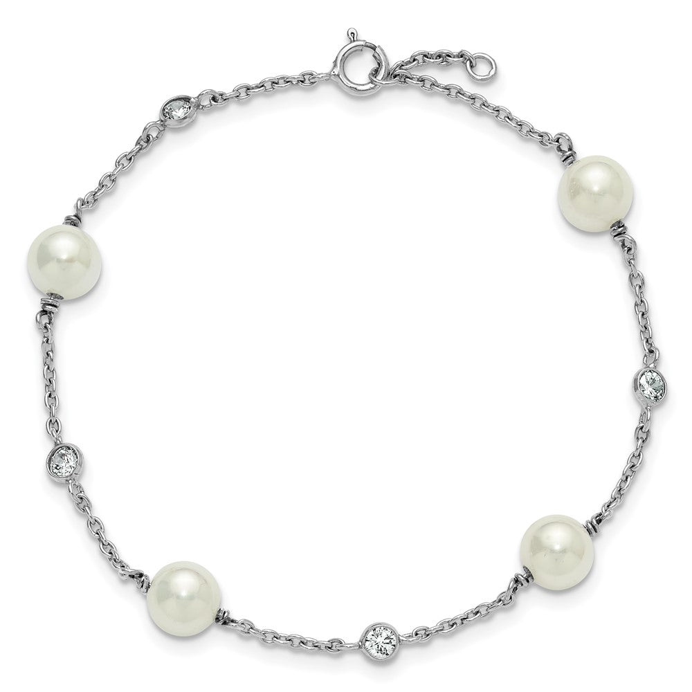 Sterling Silver Rhodium-plated Polished CZ and Shell Pearl 8-Station 7 inch with 0.5 inch Extender Bracelet