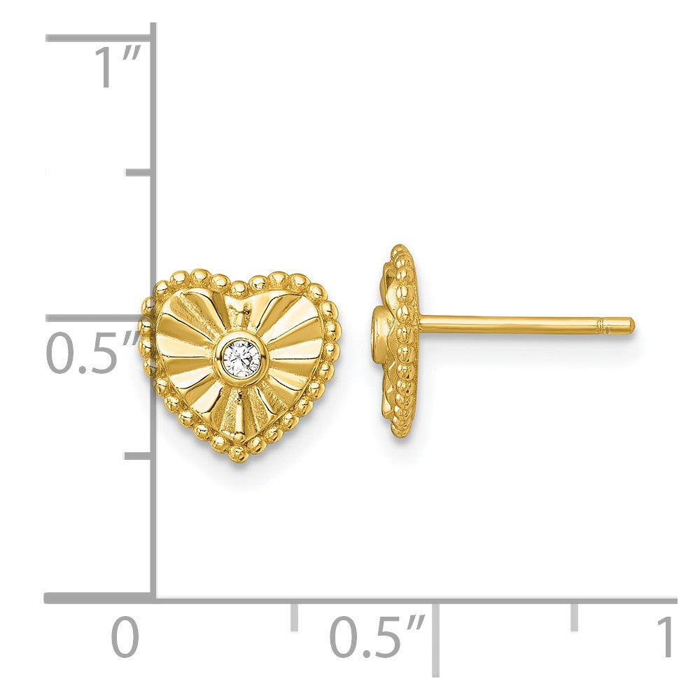 Affordable Expressions Sterling Silver Gold-tone Polished Beaded and Textured CZ Heart Post Earrings