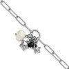 Sterling Silver Rhodium-plated Stars and White Freshwater Cultured Pearl and Black Acrylic Bead 6.75 inch with 1 inch Extender Paperclip Bracelet