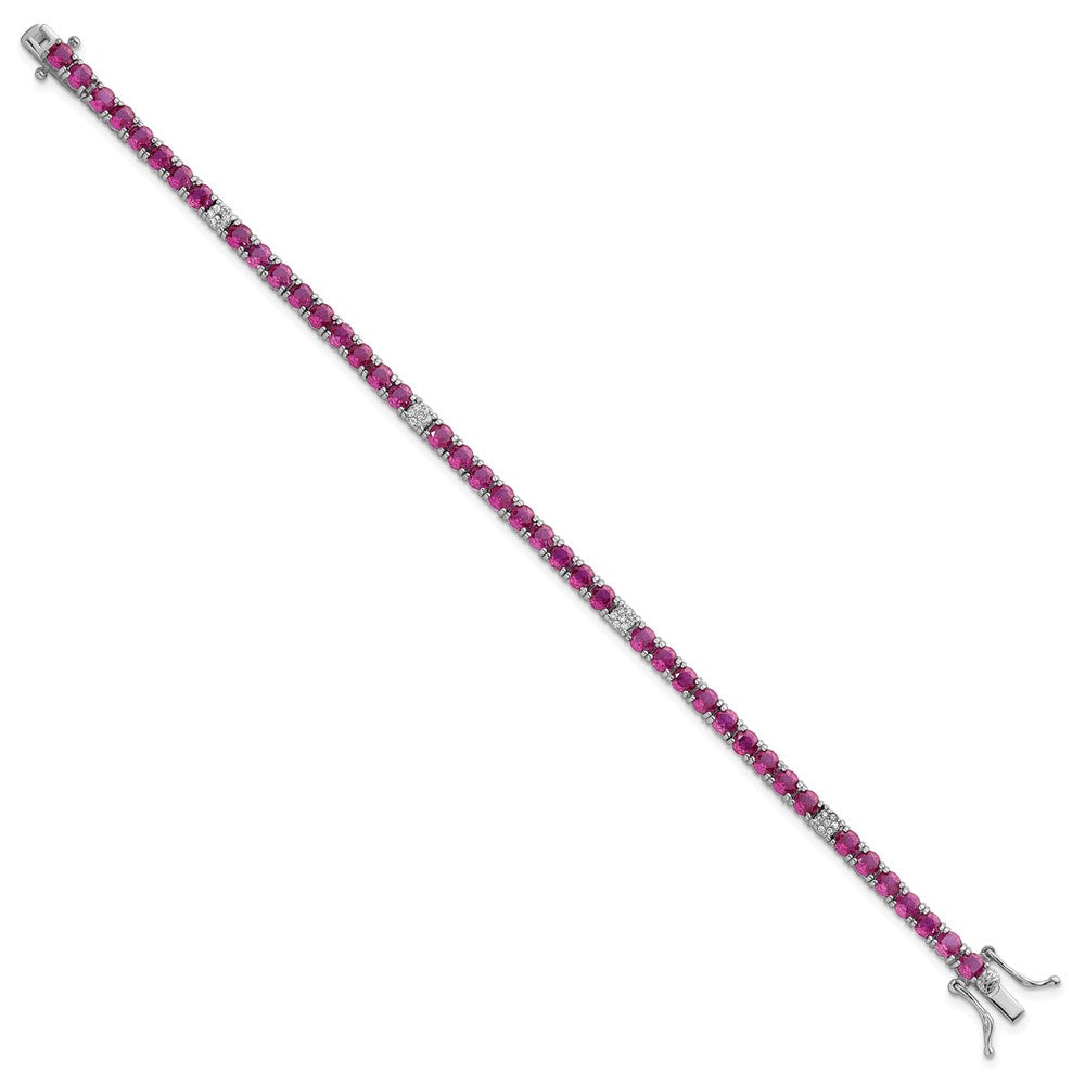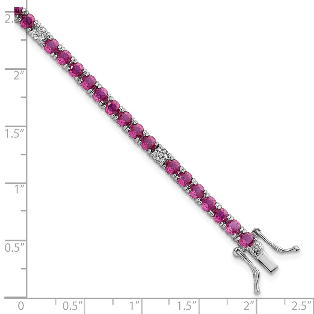Sterling Silver Rhodium-plated Polished Round Red and White CZ 7 Inch Bracelet