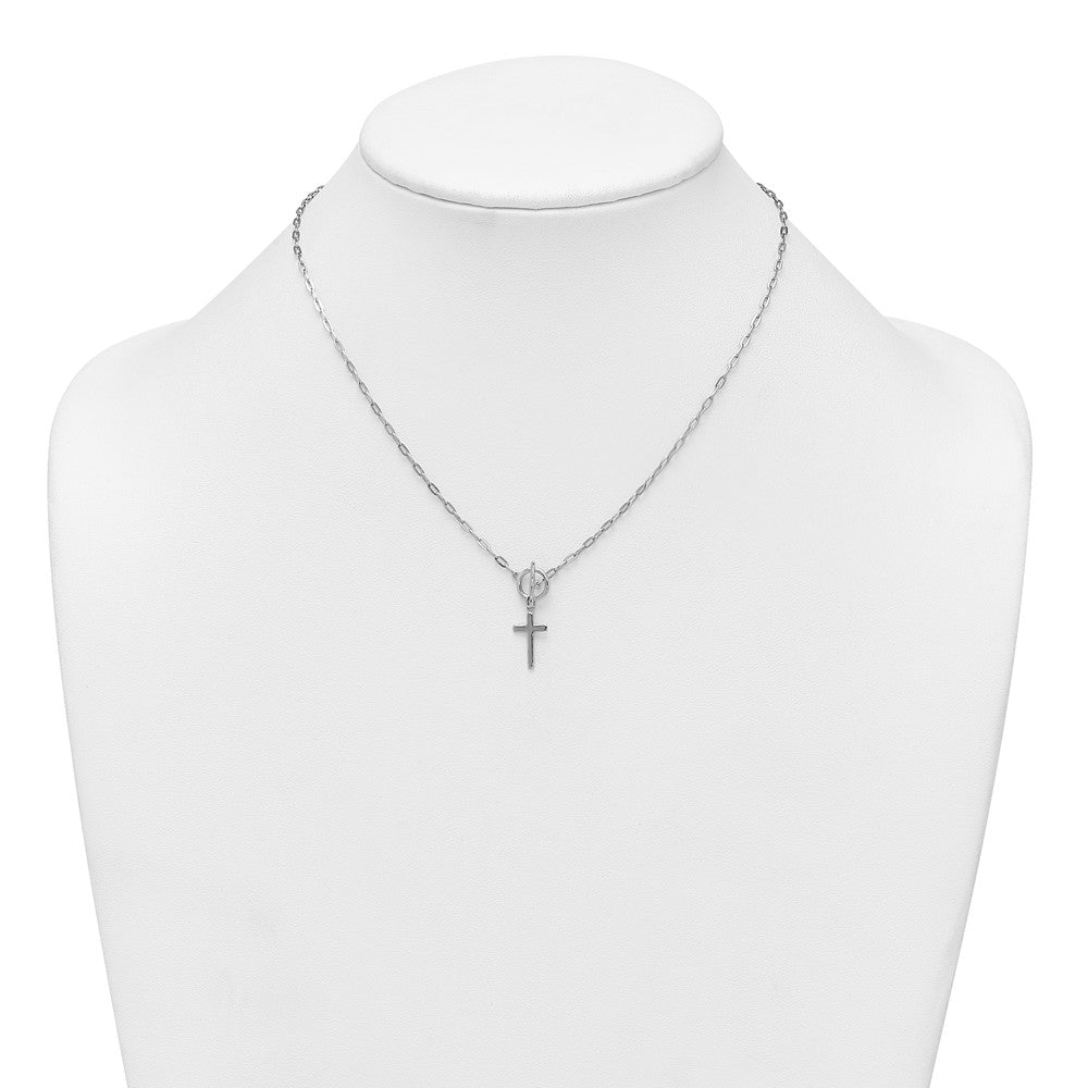 Sterling Silver Rhodium-plated Polished Cross Dangle Paperclip Link 16 Inch with 2 Inch Extension Necklace
