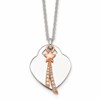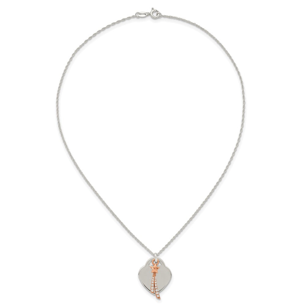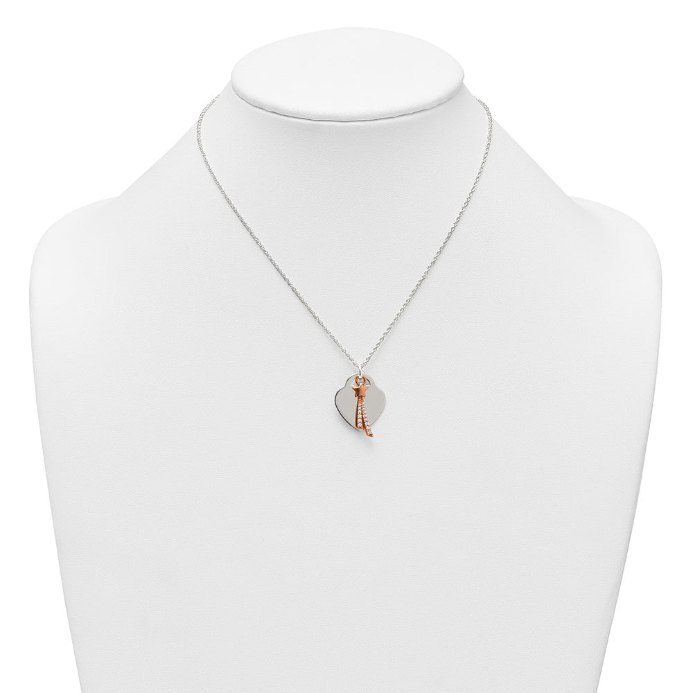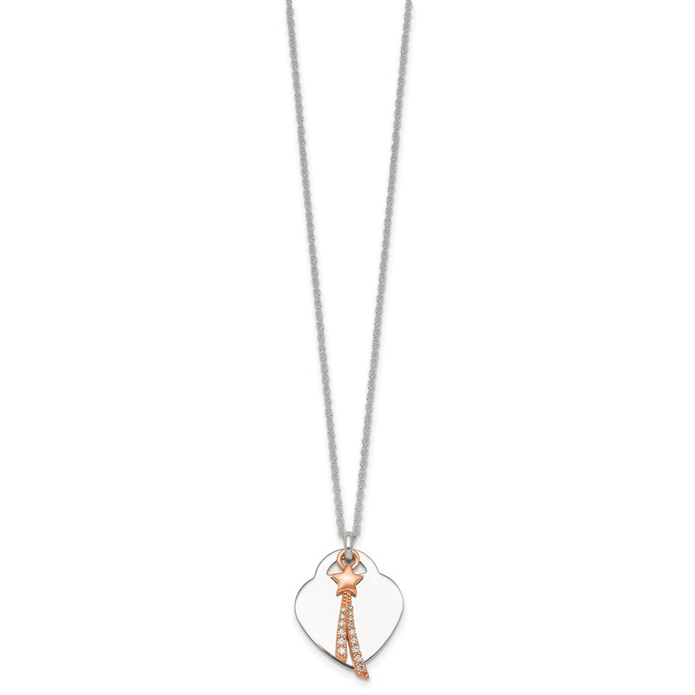 Sterling Silver with Rose-tone Polished White CZ Heart and Shooting Star Dangle 16 inch Necklace