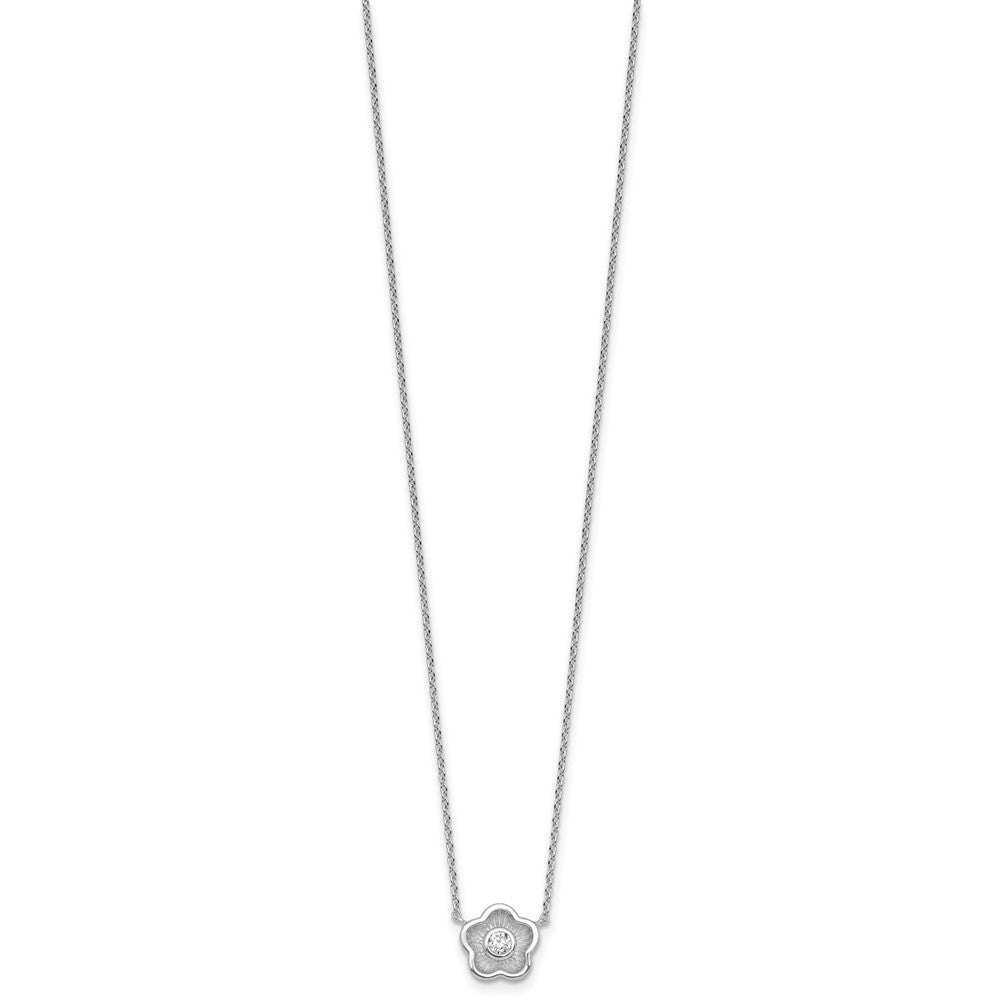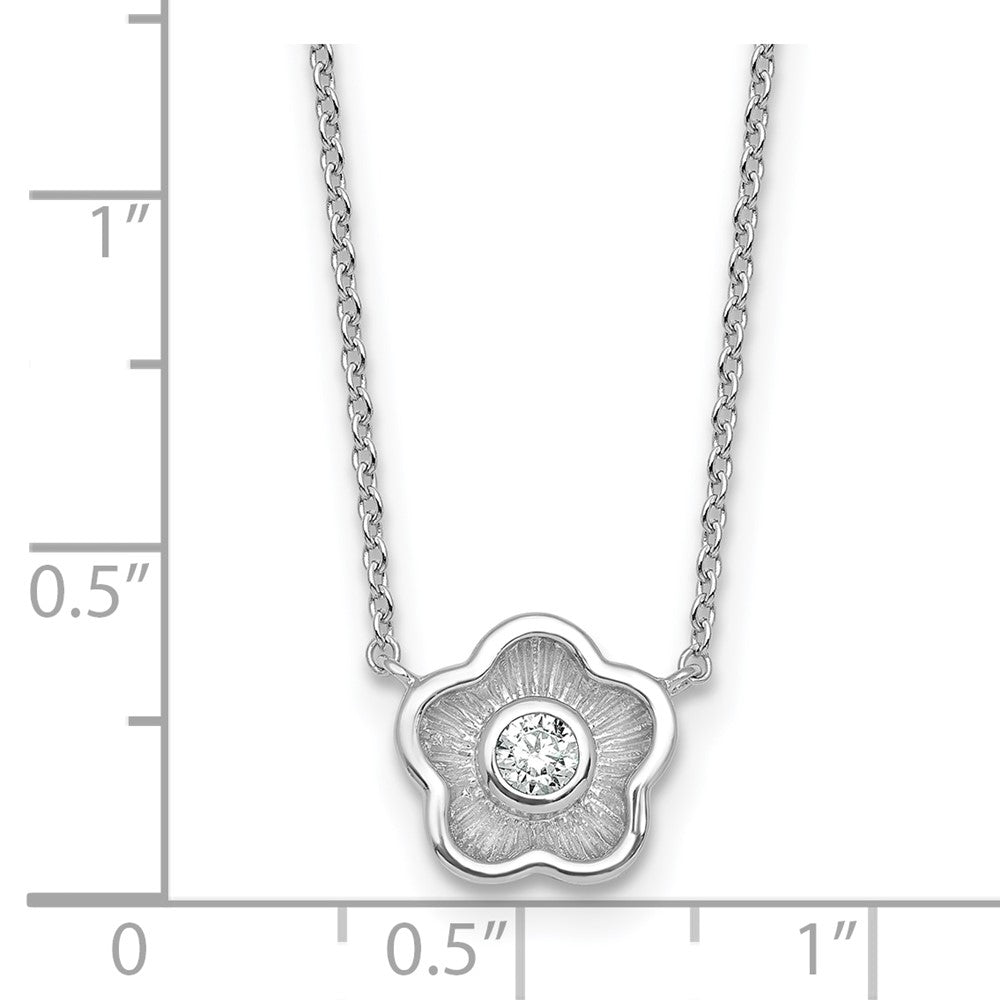 Sterling Silver Rhodium-plated Polished Textured CZ Flower 18 Inch Necklace