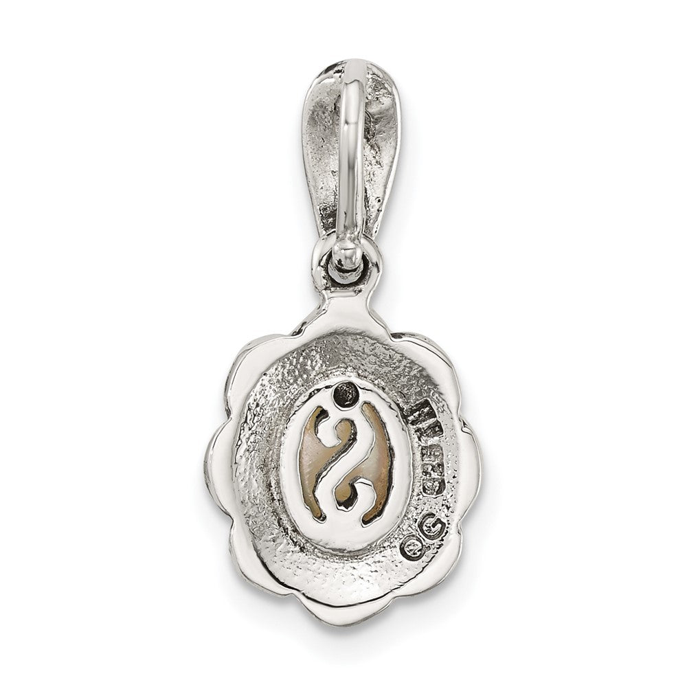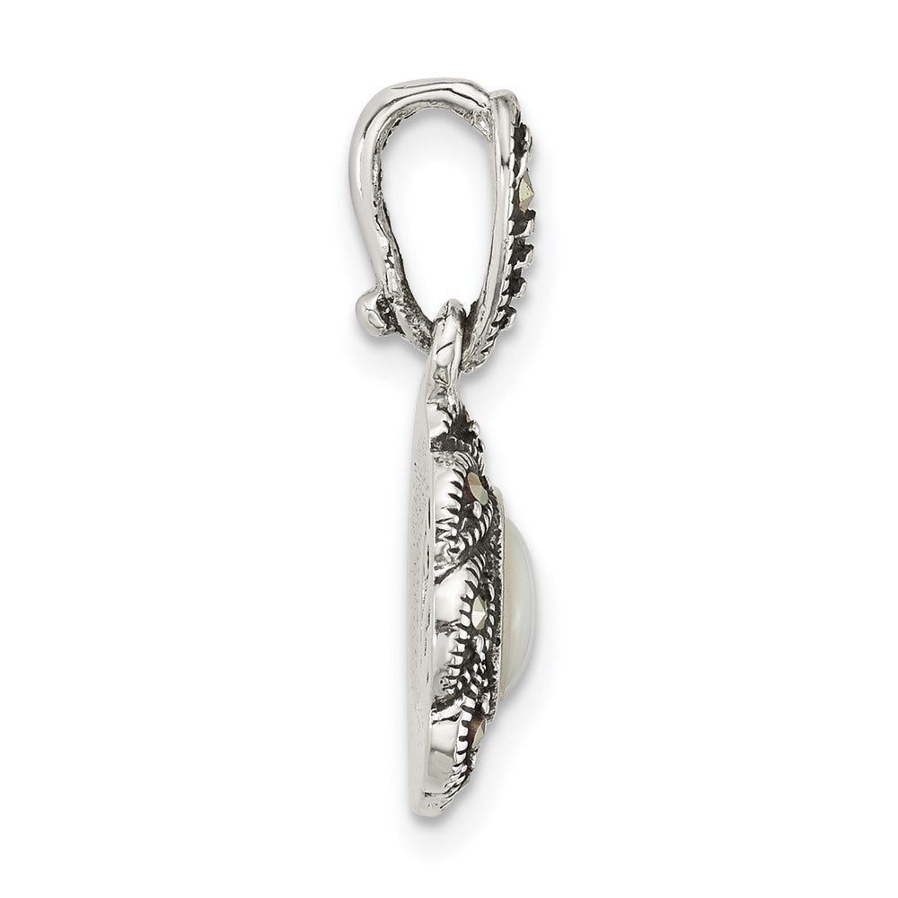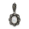 Sterling Silver Antiqued Marcasite and Mother of Pearl Oval Fancy Pendant