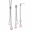 Sterling Silver Rhodium-plated 7-8mm Pink and White Teardrop Freshwater Cultured Pearl Knot 18 inch Necklace and Post Dangle Earrings Set