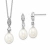 Sterling Silver Rhodium-plated 8-9mm White Teardrop Freshwater Cultured Pearl and CZ 17 inch Necklace and Post Dangle Earrings Set